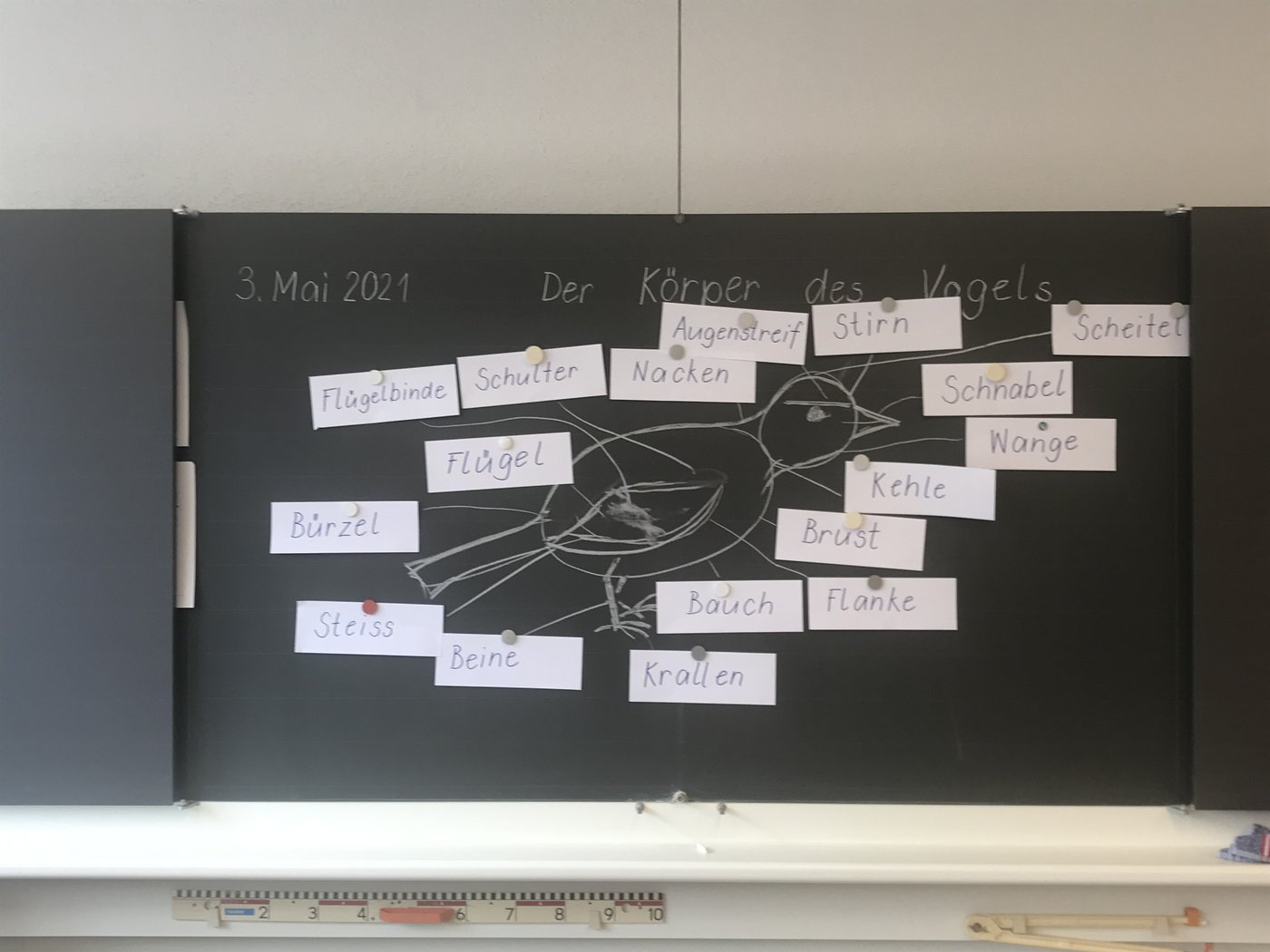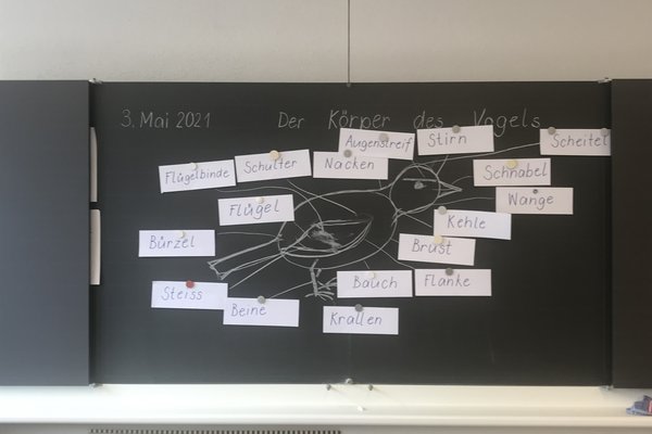 Im Schulzimmer beschrieben sie danach das Aussehen ihrer Vögel und mit der Hilfe von Büchern, Bildern oder dem grossen Wissen von Frau Komenda-Zehnder wurden die ersten Vogelarten bestimmt. Die Vogelstimmen dienten der Arterkennung: Wie singt der Buchfink? Und wie tönt die Mönchsgrasmücke? Natürlich stand immer auch das Internet als Forschungsquelle zur Verfügung und die ausgestopften Präparate der Schule wurden ebenfalls zum Vergleich beigezogen.