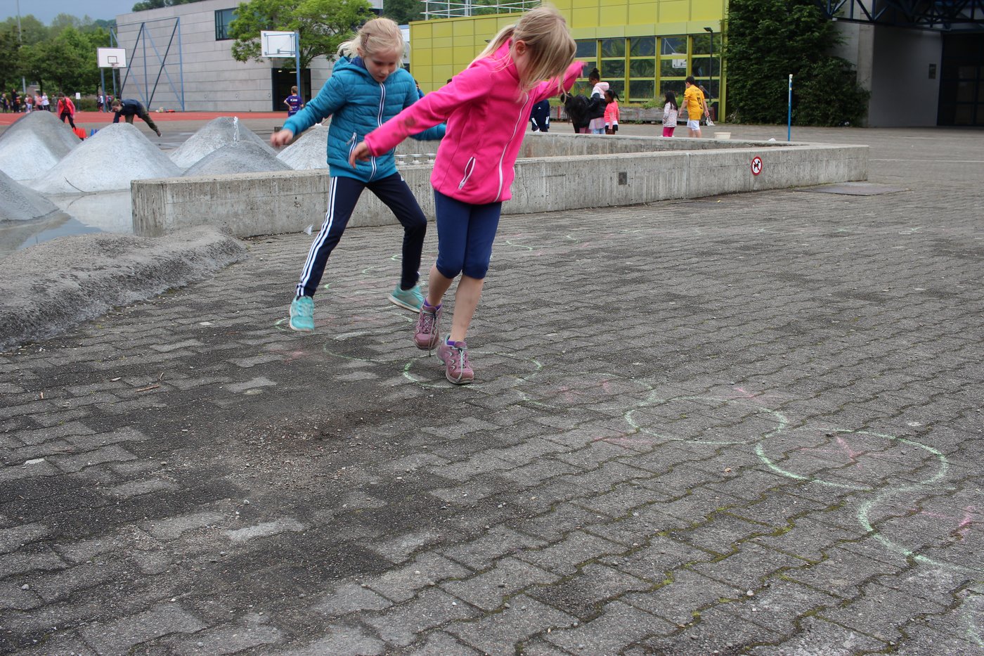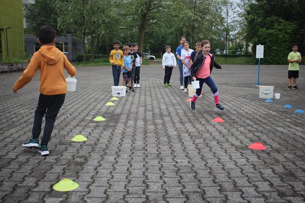 Endlich konnten wir unseren lang ersehnten Sportmorgen durchführen. Nach Corona und einer Schlechtwetterphase trafen sich die Lehrpersonen der Unterstufe und die rund 100 Schülerinnen und Schüler dieses Jahr am Mittwochmorgen auf dem Pausenplatz. In sechs gemischten Gruppen starteten die Kinder an einem Posten.