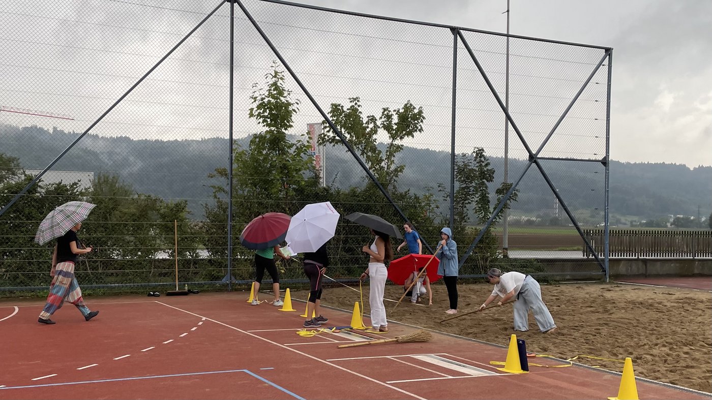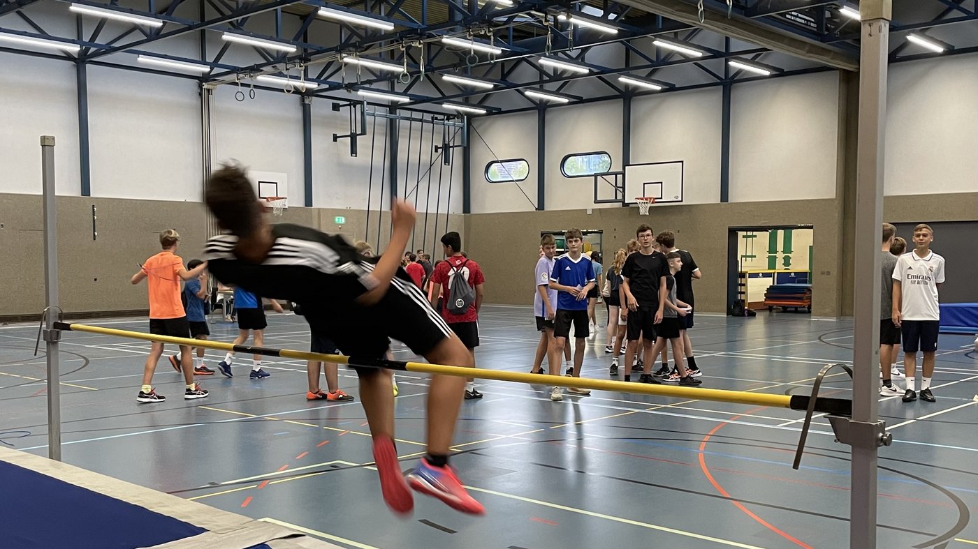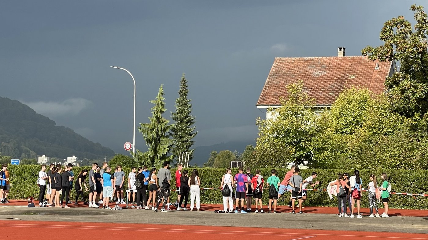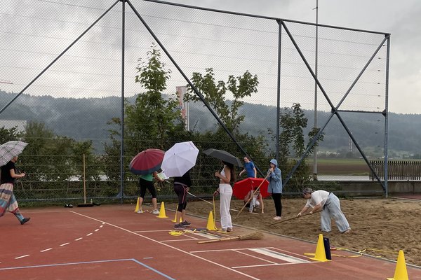 Die verschiedenen Disziplinen der Leichtathletik fanden während des ganzen Morgens im Sonnenschein und auch Regen statt. Es liess sich jedoch kaum eine/r von dem ständigen Wetterwechsel beirren und nebst kleinen Anpassungen, wie dem Hochsprung in der OSOS-Halle statt unter freiem Himmel, konnte der Morgen wie gewohnt durchgeführt werden.