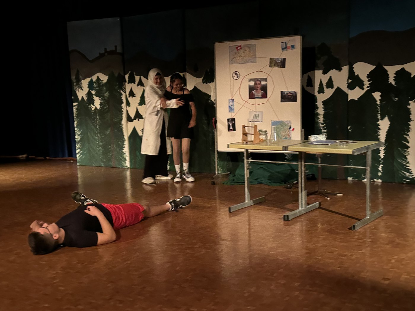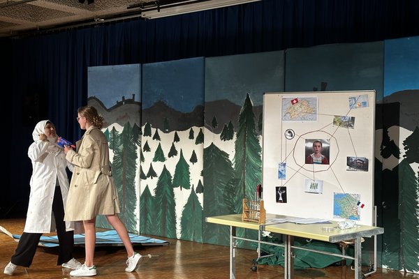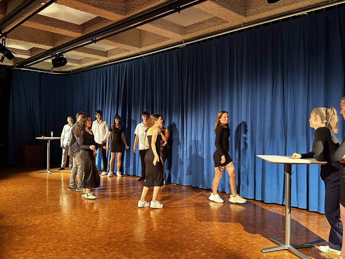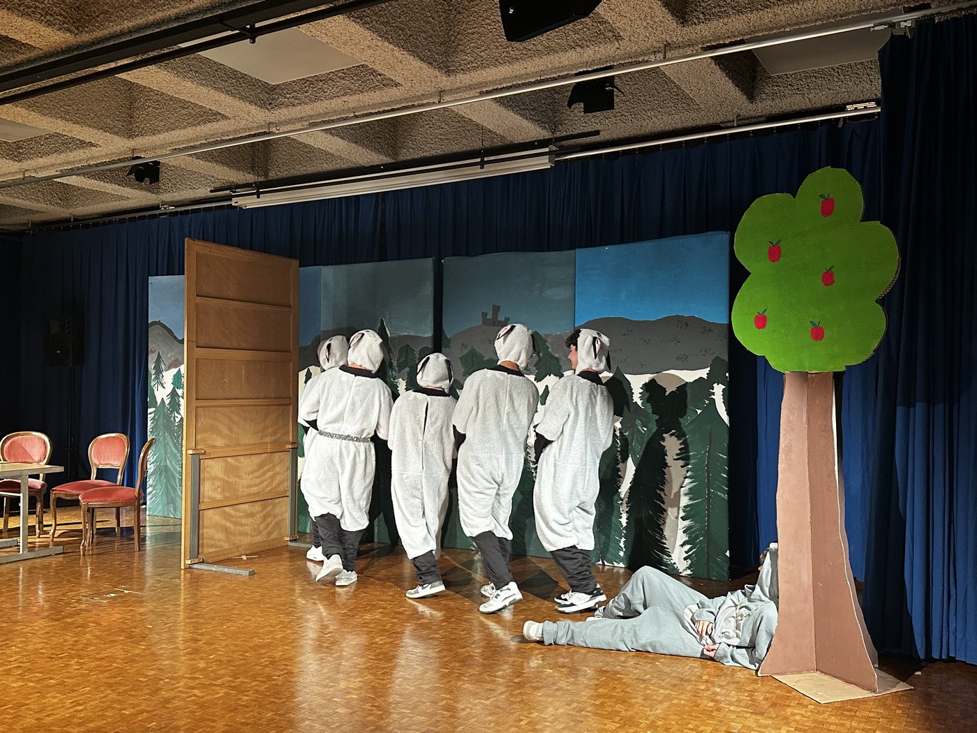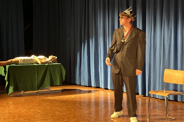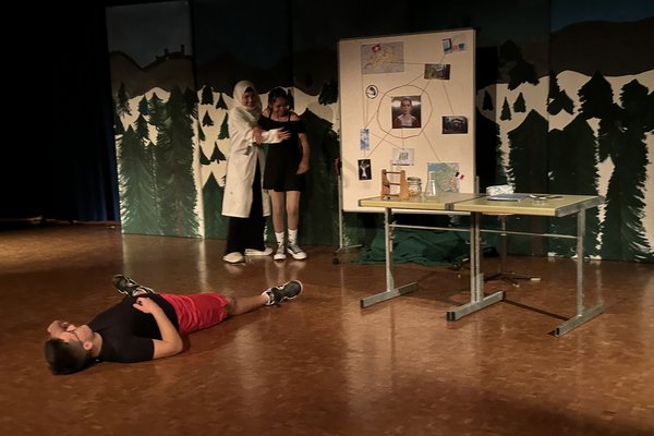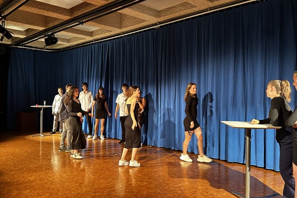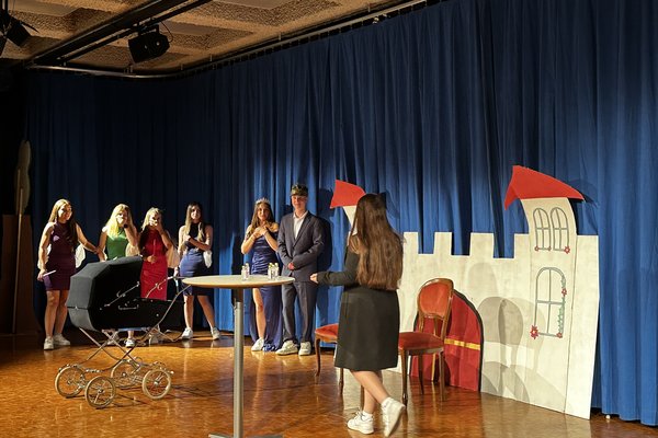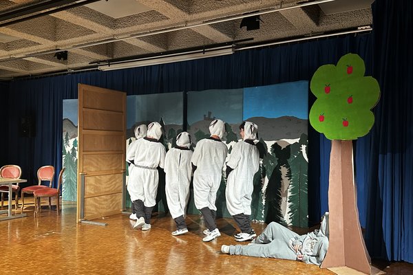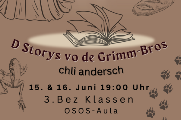 Die Zeit raste in Richtung Aufführung. Während die Theatergruppen immer mehr Fortschritte erreichten und langsam zu proben begannen, schrieb die Moderation ihr Skript für die Zwischenacts und entwarf einen Flyer für das Theater. Die Technik, meistens mit dem Kennenlernen des Soundboards und des Lichtpultes beschäftigt, erhielt zwischenzeitlich Nachhilfe von Technikprofi Urs Kuster. Und dann, nach zweiwöchiger Hauptprobe war es soweit: Das Märchentheater „D Storys vo de Grimm-Bros chli andersch“ der beiden dritten Bezirksschulklassen stand vor der Türe!