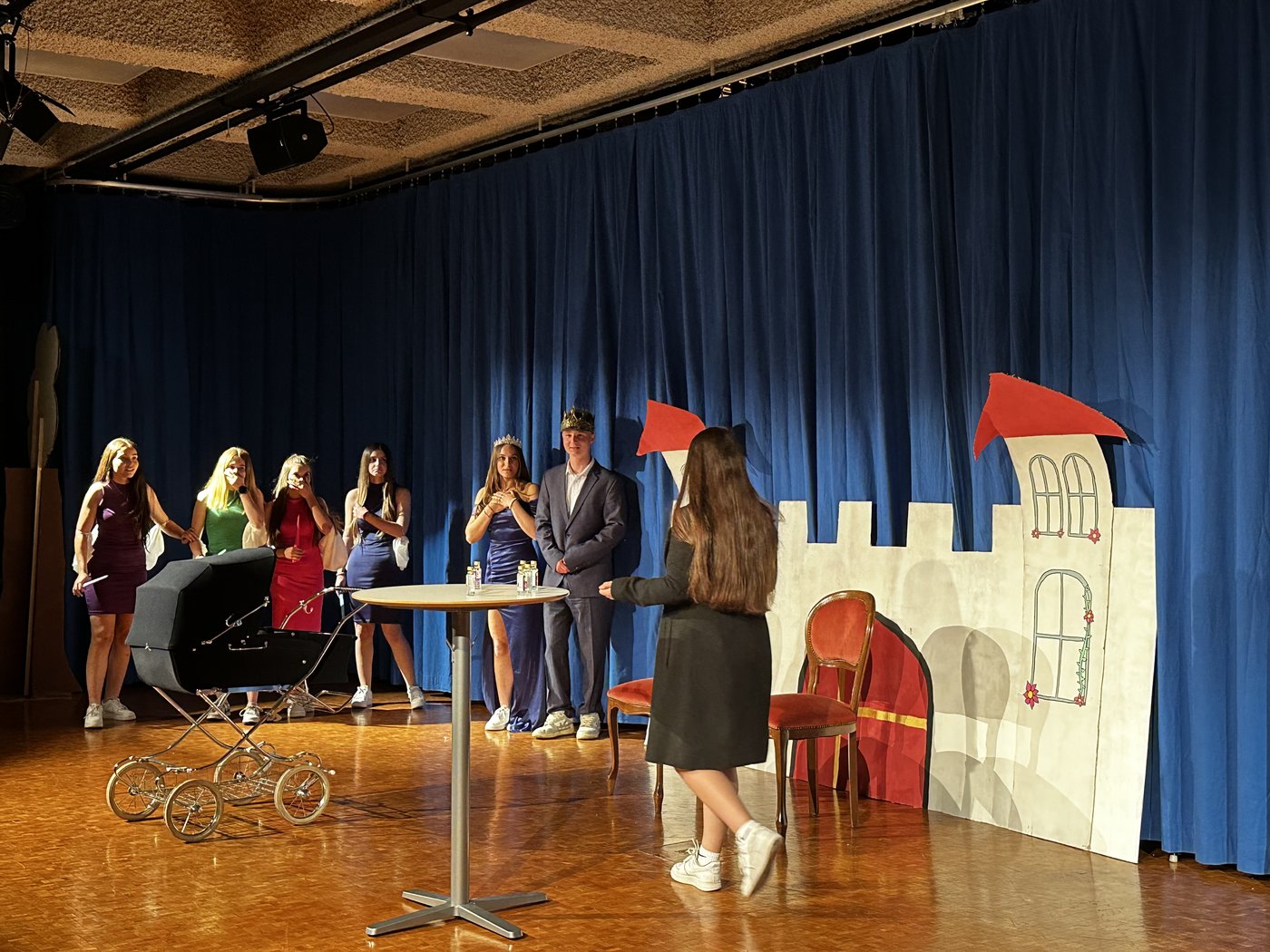Mit vielen lustigen Szenen brachten wir das Publikum immer und immer wieder zum Lachen, die verschiedenen Kostüme wurden gefeiert, die Märchengruppen rockten die Bühne, und auch die Technik und die Moderation leisteten eine hervorragende Arbeit! Mit anderen Worten: Alles klappte prima! Das Theater wird mit Sicherheit in die Geschichtsbücher unserer Schule kommen.