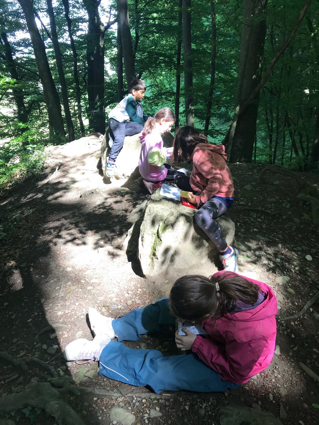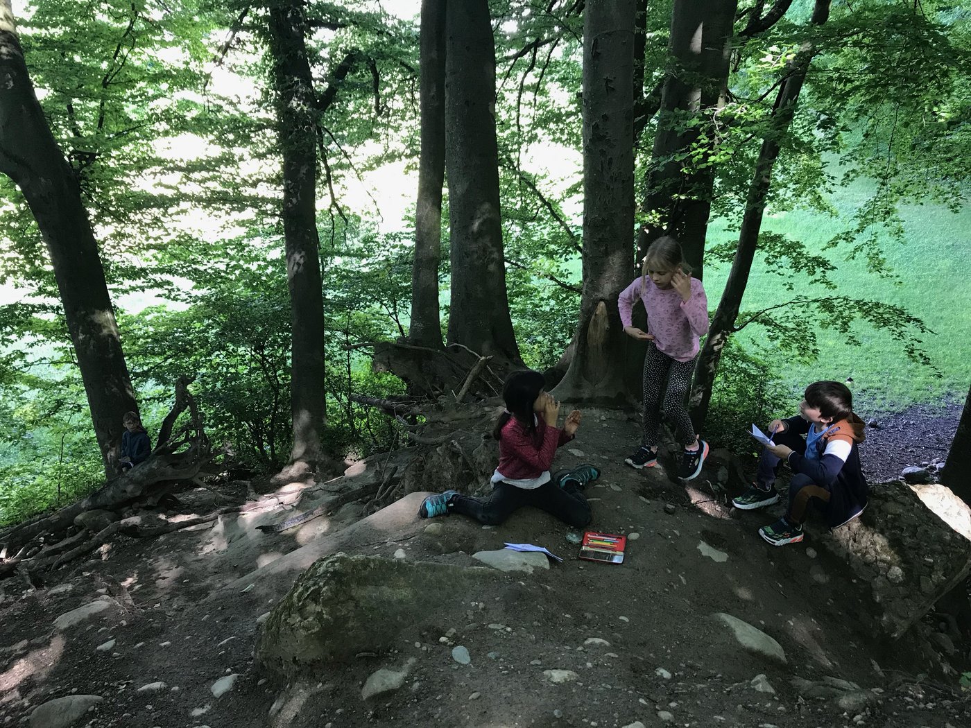 Vor Schuljahresende befasste sich die Klasse P3b mit dem Thema Wald. Dabei verbrachten wir einige spannende Stunden im Töbeliwald und nahmen die Umgebung mit all unseren Sinnen wahr. So konnte das im Schulzimmer gelernte Wissen handelnd vertieft und ergänzt werden. Die Erkenntnisse wurden daraufhin in Minibooks festgehalten.