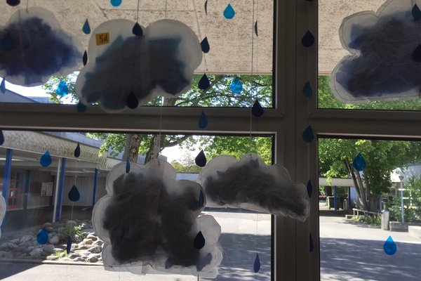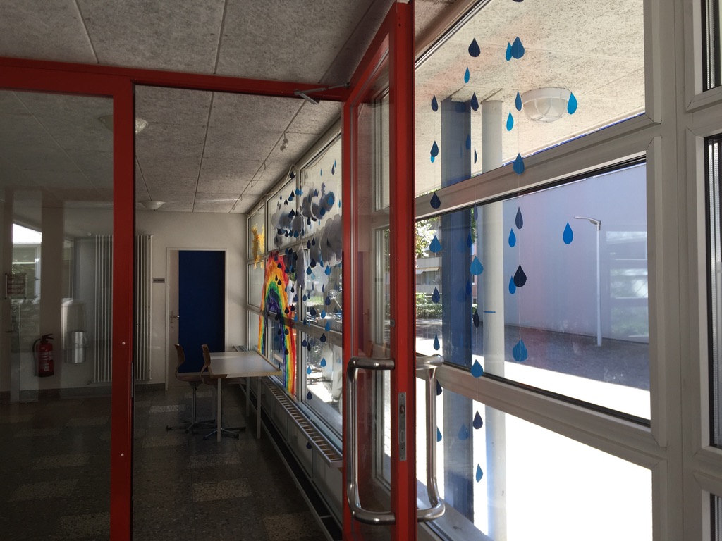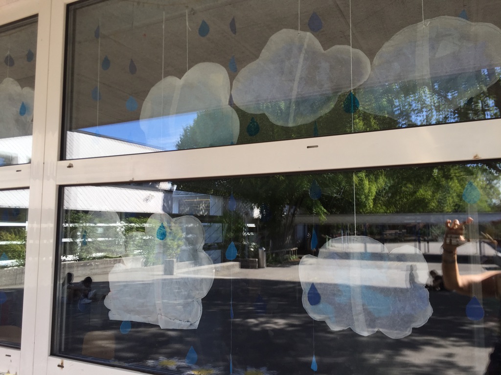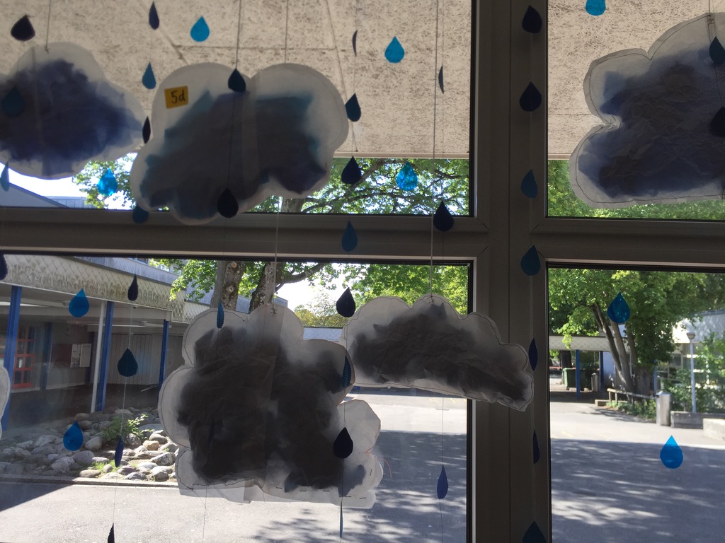 In der ersten Woche nach den Sommerferien haben alle Primar-Klassen, die im Schulhaus Unterboden das Fach TTG (technisches und textiles Gestalten) besuchen, gemeinsam an einer Dekoration gearbeitet. Diese Wetterbilder können auch von aussen bewundert werden.