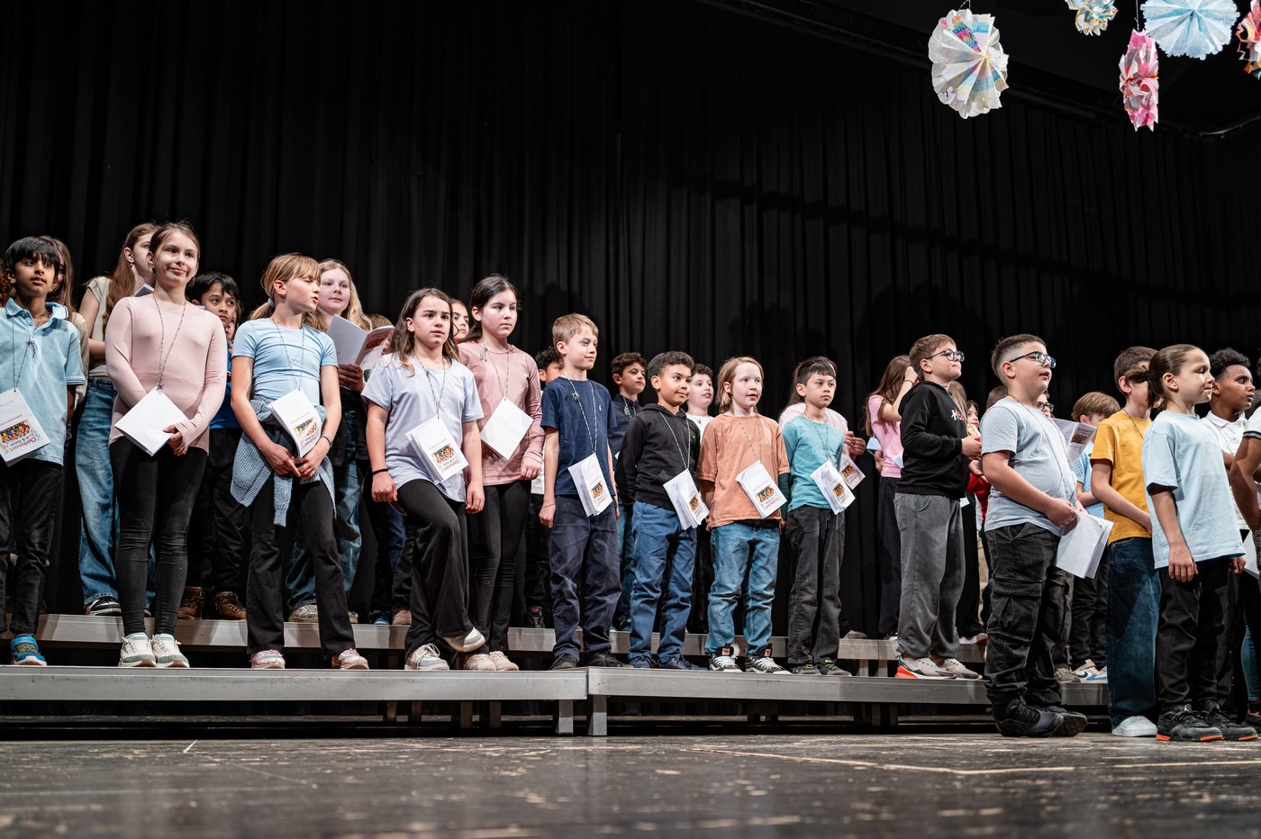 Am Dienstagabend, 24. März, wurde der Gemeindesaal zur Bühne für ein ganz besonderes musikalisches Erlebnis: Die Schülerinnen und Schüler aller 4. Klassen präsentierten gemeinsam ihr Chorkonzert, das sie in den vergangenen Wochen mit viel Engagement vorbereitet hatten.
