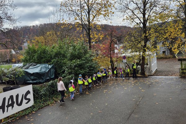 Sie lernen zuerst im Klassenzimmer die Verhaltensweisen auf der Strasse und üben dies nachher Draussen.
