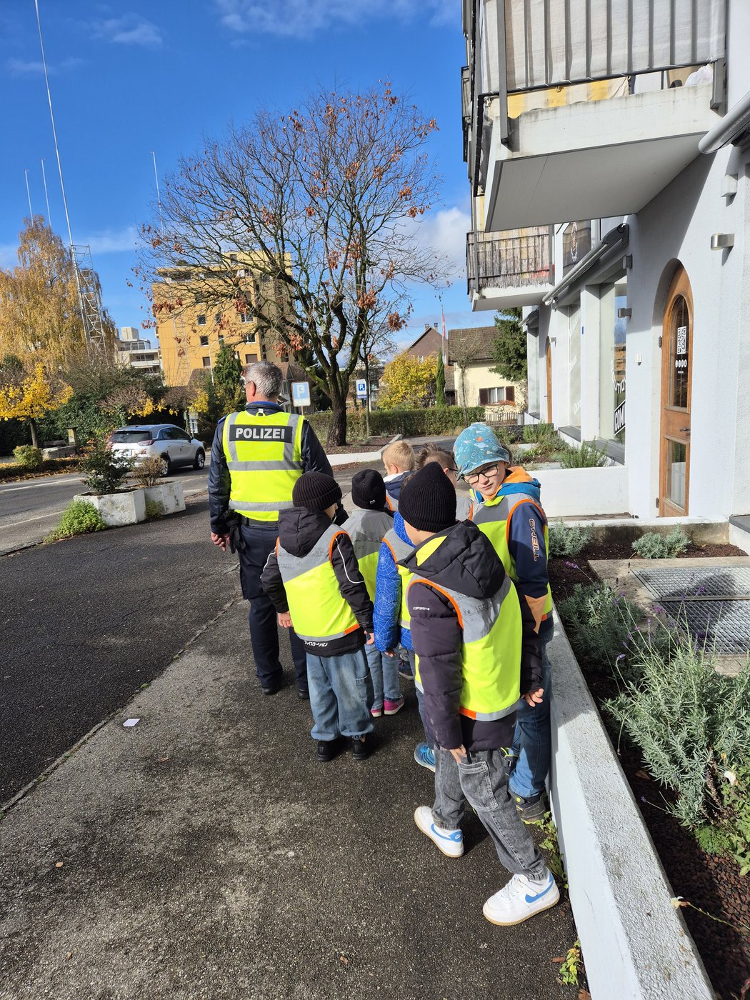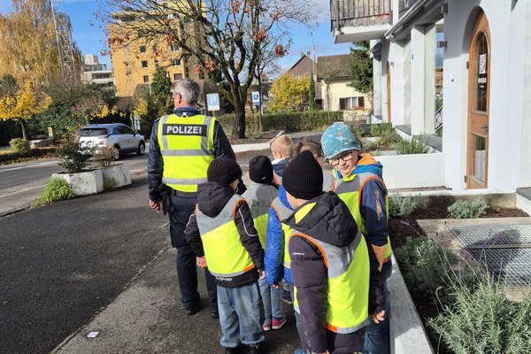 Alle Jahre wieder geniessen die Kinder im Herbst zwei Lektionen Verkehrserziehung durch einen Polizisten von der Stadt Polizei Baden.