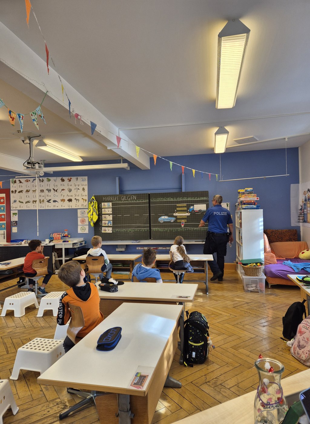 Wenns mucksmäuschen still im Schulhaus ist, liegt das möglicherweise am anwesenden Polizist.