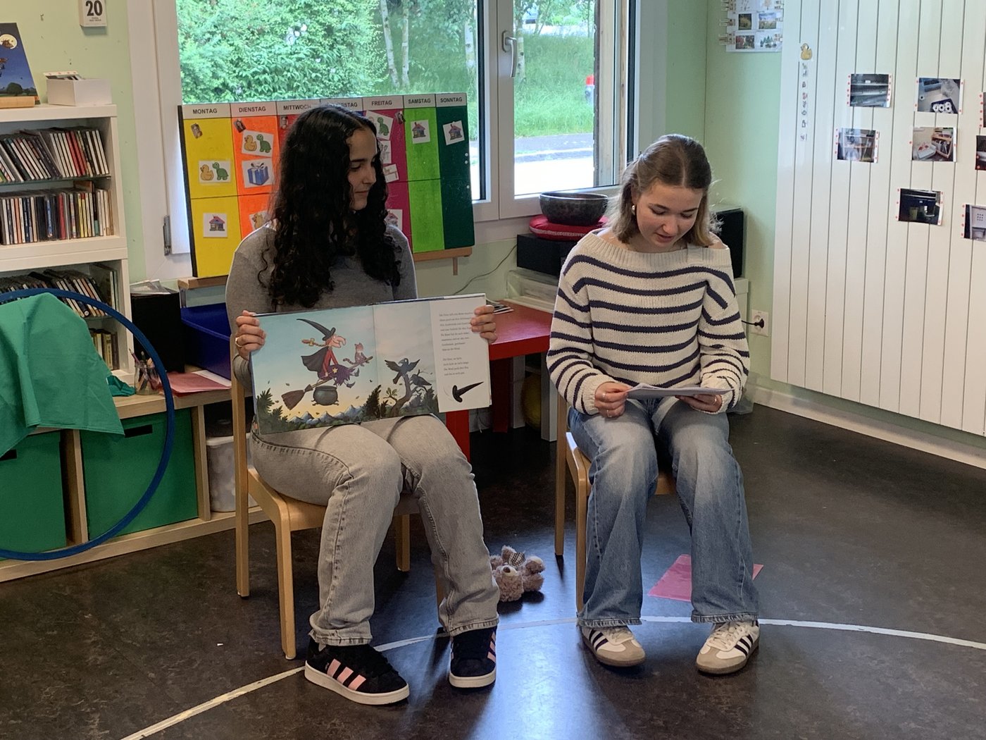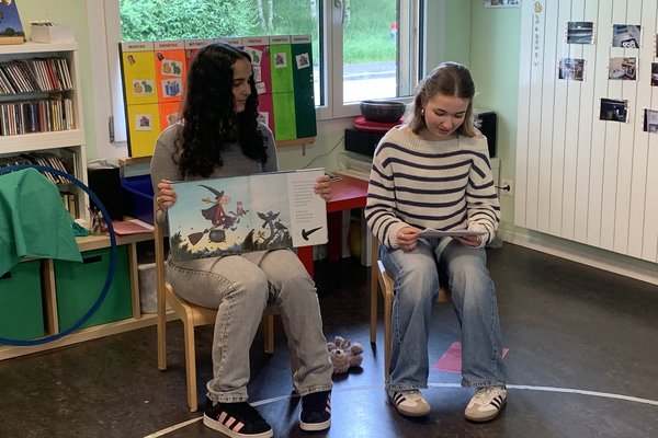 In Zweiergruppen haben wir dann im Mai die verschiedenen Kindergärten in Nussbaumen besucht und den Kindern eine Bilderbuchgeschichte vorgelesen. Dafür konnten wir den Ablauf unseres Besuchs frei gestalten und uns einen coolen Einstieg für die Mädchen und Jungen überlegen. Das Vorlesen hat uns eine Menge Freude und eine willkommene Abwechslung zu den gewöhnlichen Schulstunden bereitet. Wir sind mit unserem Projekt bei allen Beteiligten auf viel Begeisterung gestossen.