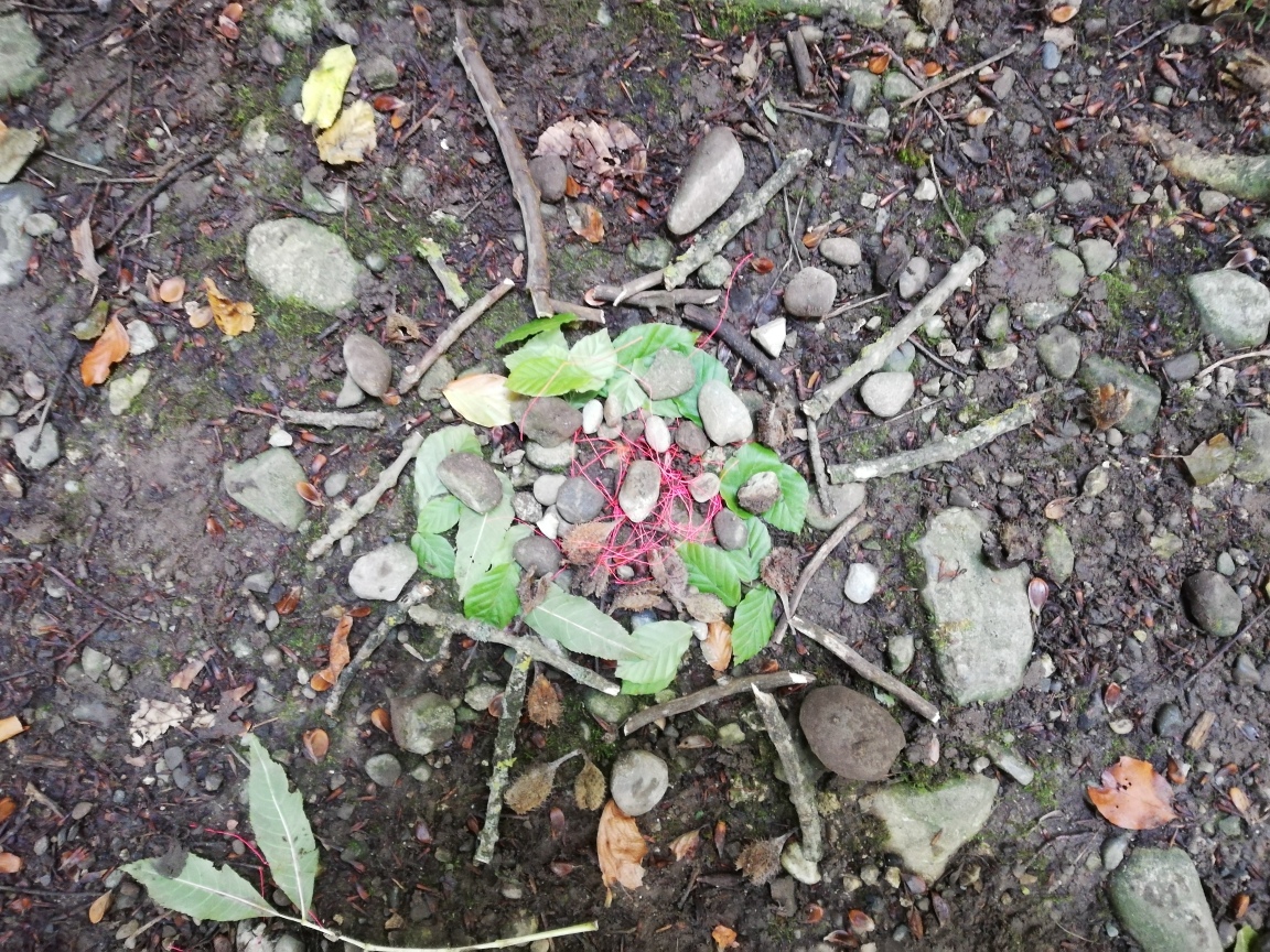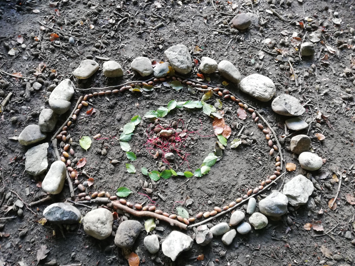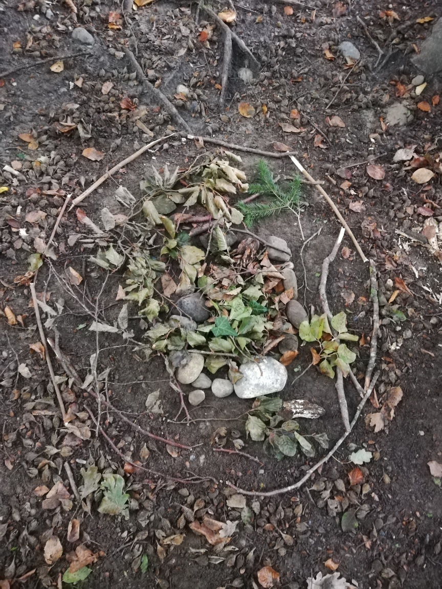 Trotz eher kühlen Temperaturen machten wir uns auf den Weg hinauf in den Töbeliwald. Neben dem gemeinsamen Spielen, Klettern, Wald erkunden und Znüni essen, bekamen die Kinder die Aufgabe, ein Waldmandala zu gestalten. In kleinen Gruppen sollten sie mithilfe von Waldsachen ein Mandala legen. So suchten die Kinder Blätter, Steine, Tannenzapfen, Äste und vieles mehr. Sie staunten selber, wie einfach ein Kunstwerk im Wald entstehen kann!