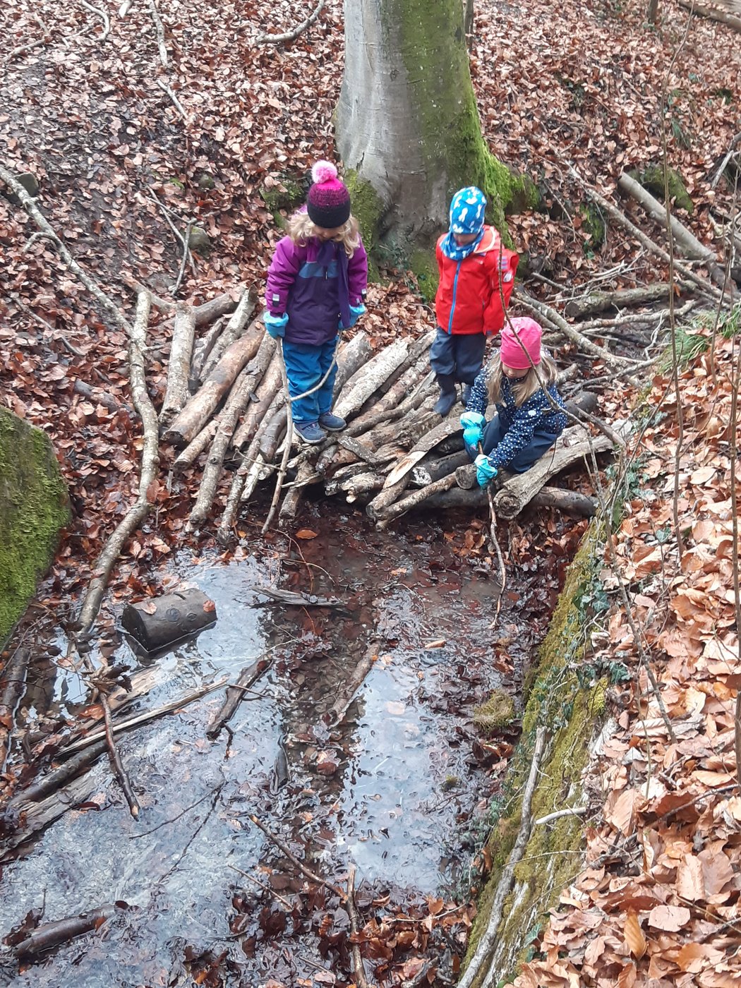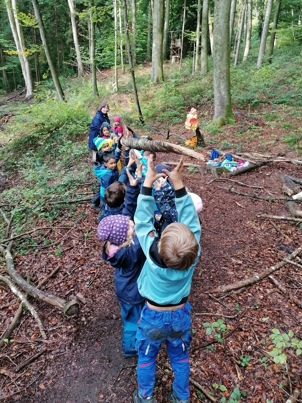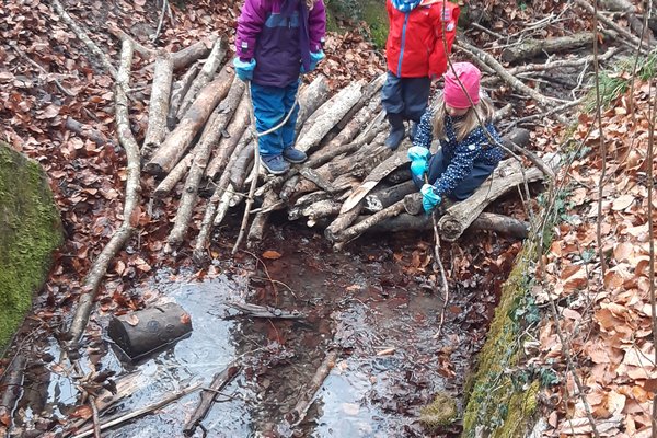 Es wird kühler und die Blätter verfärben sich bunt. Die beiden Nuechtal Kindergartenabteilungen erleben den Herbstwald. Die Kinder sammeln unterwegs Naturmaterialien, mit denen später im Kindergarten viel gebastelt wird. Beim Waldspielplatz angekommen, wird ein Feuer gemacht, Znüni gegessen, gespielt und weiter entdeckt.