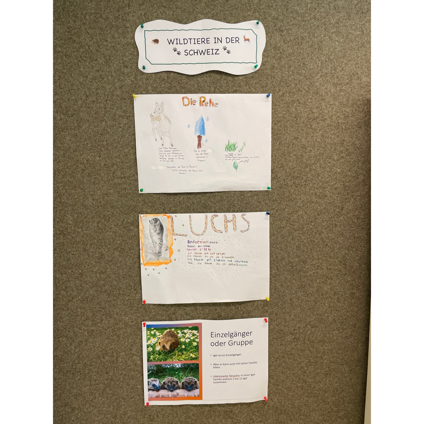 Mit grosser Motivation und viel Kreativität haben die Kinder in Kleingruppen Plakate gestaltet, auf denen sie wichtige Merkmale, Lebensräume und Besonderheiten der Tiere visuell aufbereitet haben. Dabei entstanden bunte Überschriften, Steckbriefe, Zeichnungen und selbst formulierte Sätze.