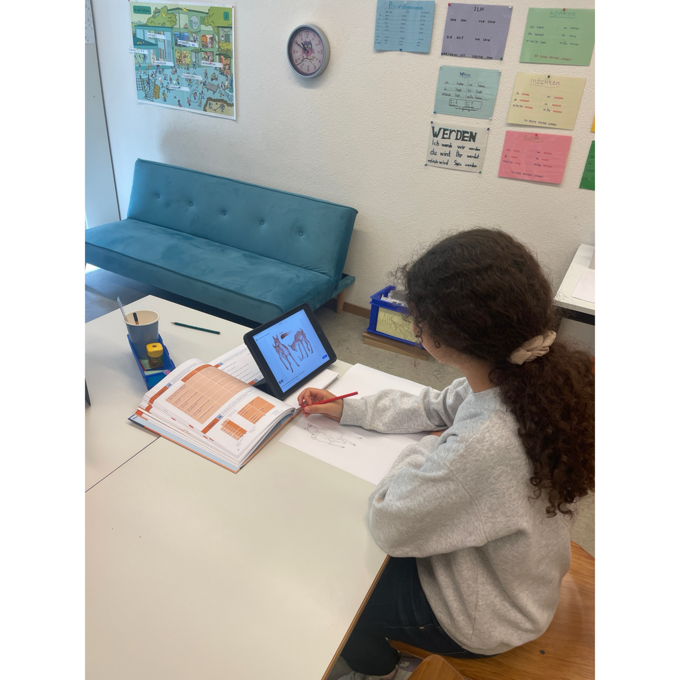 Ein besonderes Highlight war die Präsentation der Plakate vor der Klasse: Die Kinder haben „ihr Tier“ vorgestellt und geübt, vor anderen zu sprechen – ein wichtiger Schritt im Sprachaufbau und im Selbstvertrauen.